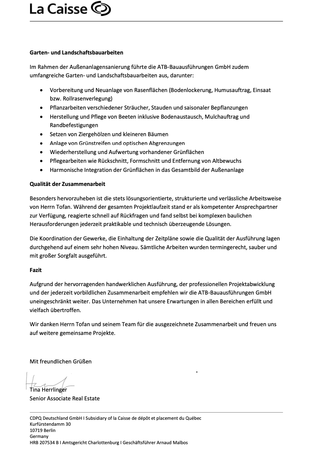 Auswahl an Empfehlungsschreiben unserer Auftraggeber.
